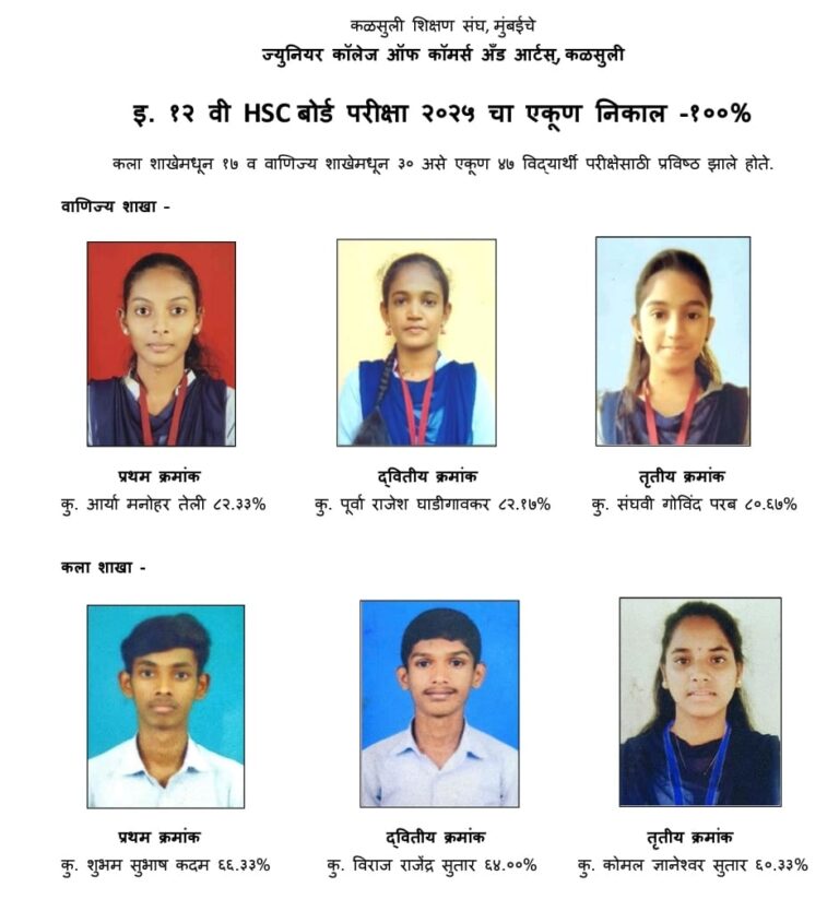 कै.हेमंत केशव रावराणे महाविद्यालयाचे एच.एस.सी.परीक्षेत उज्ज्वल यश