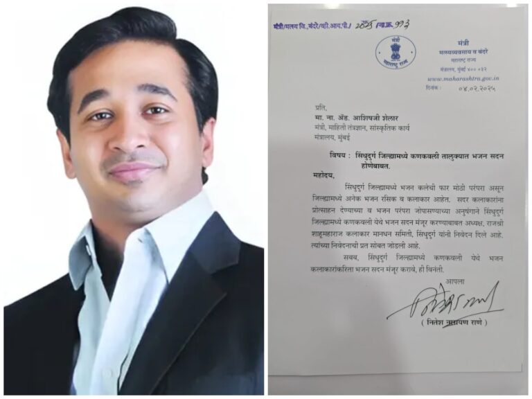 पालकमंत्री नितेश राणेंची कणकवलीत भजन सदन मंजुरीची सांस्कृतिक मंत्री आशिष शेलारांकडे मागणी