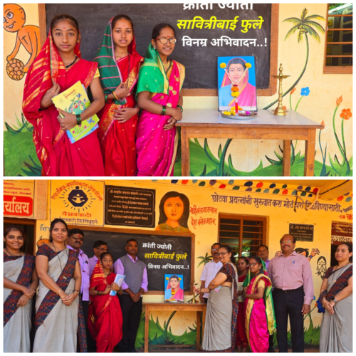सावित्रीबाई फुले यांच्या वेशभूषेतील विद्यार्थीनींनी वेधले साऱ्यांचे लक्ष