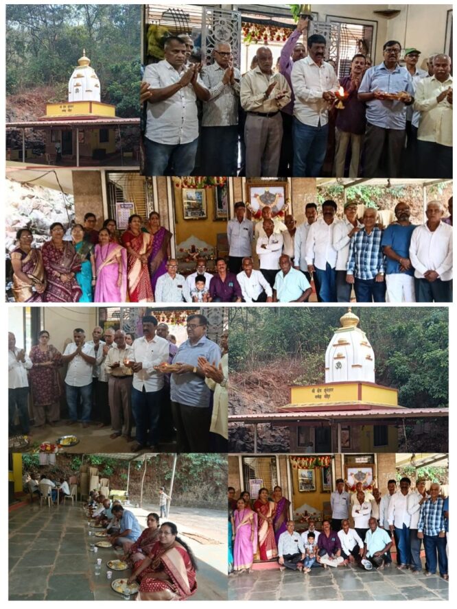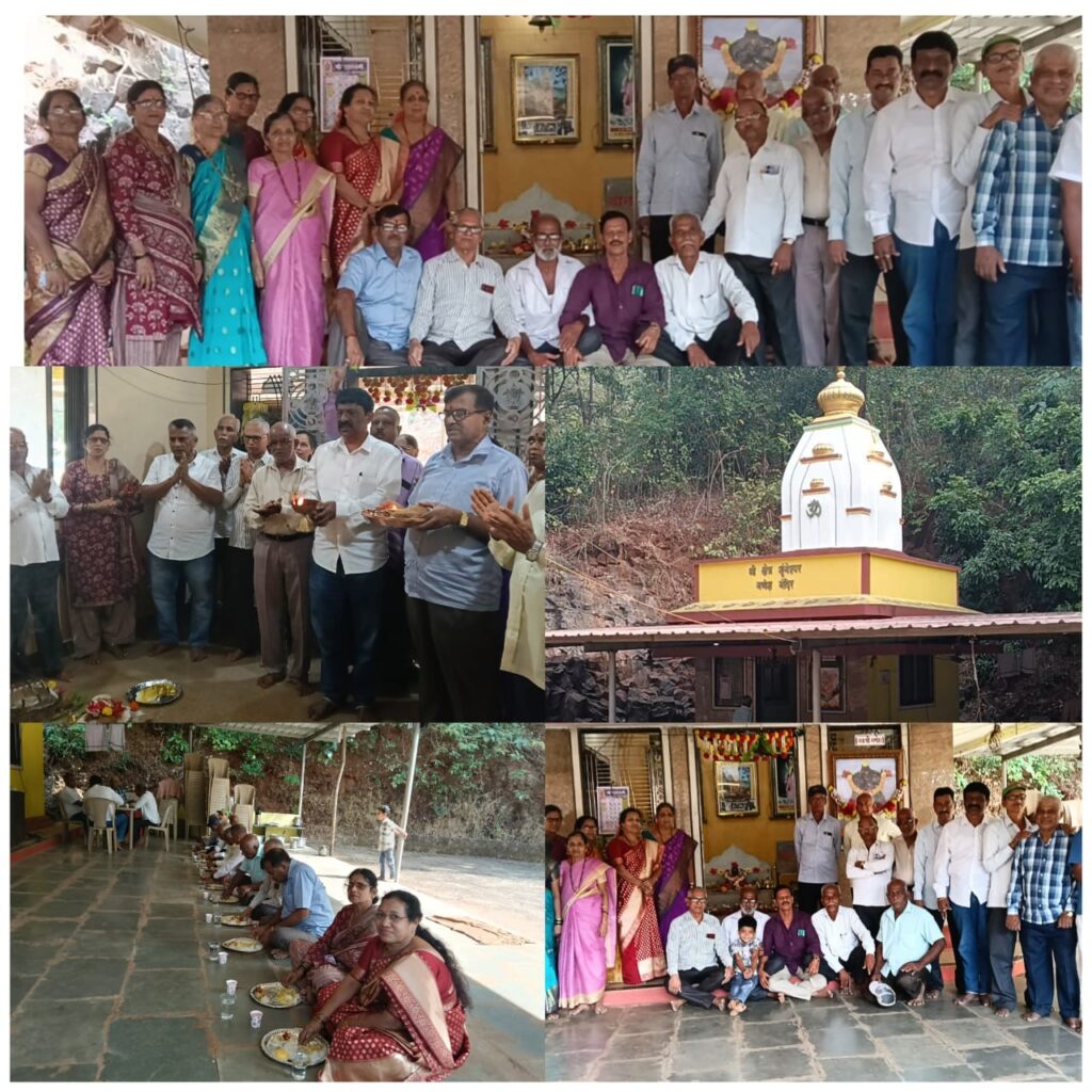 अशा पवित्र आणि रम्य ठिकाणी “बचपन के दोस्त”च्या या दिवसाची सुरुवात जोशी गुरुजींनी अभिषेक-पूजेने संपन्न झाली. मित्रवर्य जया जाधव यांनी सकाळीच दुग्धाभिषेकासाठी दूध आणि भोजनासाठी तांदूळ आणून श्री सेवा अर्पण केली. साधारणतः १० वा. नंतर मित्र सपत्नीक उपस्थित झाले. तोपर्यंत पूजा-अर्चा आठवण गुरुजींनी स्वादिष्ट वरण- भात, डाळ आमटी, बटाटा भाजी, सोलकढीचा बेत पूर्ण केला. या वळणावर पोहोचलेल्या आणि एकत्र जमलेल्या मित्रमंडळींनी शाळेतला तोच खटाळपणा, विनोद आठवणींची जुगलबंदी, आणि तब्येतीच्या गमतीजमतींनी गप्पा रंगल्या.महिलांचा ग्रुप तर आठवणी अन् कौटुंबिक गप्पात ओसंडून वाहत होता. भोजनाच्या सुवासाने सर्वांच्याच पोटातील कावळे ओरडू लागले. शाली वहिनींची खमंग, स्वादिष्ट चकली ने थोडेसे आळण लागले होतेच. सर्वांनी मग श्रीगणपतीसह, घंटेच्या परावर्तित होणाऱ्या निनादात, देव-देवतांच्या आरत्या, मंत्रपुष्पांजली, अभंग म्हटले. त्यानंतर ग्रुपमध्ये सर्वांना, निरामय आरोग्यासाठी आणि सुख- समाधानासाठी सांगणे ( गाऱ्हाणे ) घातले. आणि मग सर्वजण गुरुजींनी केलेल्या ब्राह्मण भोजनावर तुटून पडली. साध्या,आरोग्यदायी निसर्ग सानिध्यात आणि श्रीचा कृपाप्रसाद यामध्ये उकडीचे मोदक, माव्याची बर्फी, लोणचे सर्वांनाच आनंद देऊन गेले. आणि मग पुन्हा ‘एकदा भेटू याsss’ ह्या टॅग लाईनवर सर्वांनी एकमेकांचा निरोप घेतला या वयात सुद्धा “बचपन के दोस्त” ग्रुप एकत्र येऊन निखळ-आनंद- स्वास्थ्य-वेगळेपणा जपतो,याची चर्चा सर्वत्र ऐकू येत होती.
