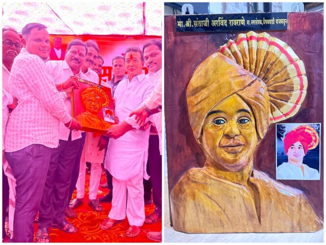 वैभववाडी (प्रतिनिधी) : वैभववाडी तालुक्याच्या वतीने मत्सोद्योगमंत्री नितेश राणे यांचा जंगी नागरी सत्कार संपन्न झाला. या नागरी सत्कारावेळी माजी नगरसेवक संताजी अरविंद रावराणे यांनी माजी सभापती अरविंद रावराणे यांच्या प्रमुख उपस्थितीत मंत्री नितेश राणे यांना त्यांच्या प्रतिमेचे सुबक देखणे काष्ठशिल्प भेट देत मंत्री राणे यांचा हटके सत्कार केला. तसेच सोनाळी गावच्या वतीने शाल व श्रीफळ देउन मंत्री राणे यांचा सत्कार करण्यात आला. यावेळी सोनाळी शक्तिकेंद्र प्रमुख प्रकाश शेलार, सोनाळी माजी सरपंच समाधान जाधव, तंटामुक्त अध्यक्ष सोनाळी सचिन तळेकर, सोनाळी शाळा व्यवस्थापन अध्यक्ष रुपेश बोभाटे, मारुती पाटील, बाबू सुतार, शांतेश शेलार आदि उपस्थित होते.