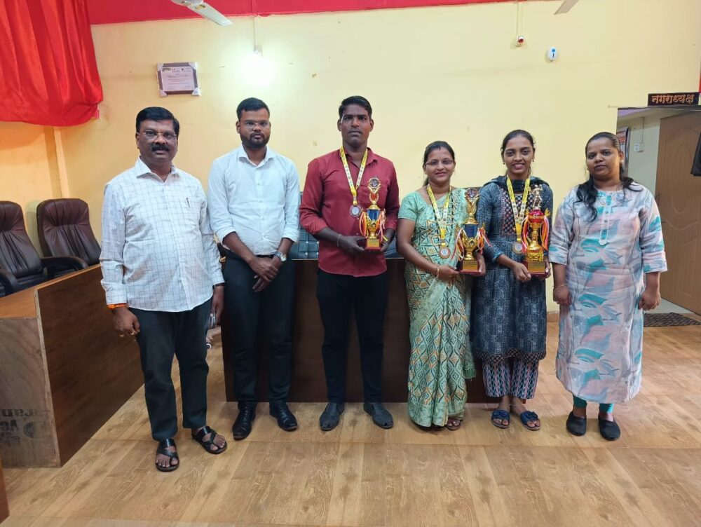 वैभववाडी (प्रतिनिधी) : नगरविकास विभाग महाराष्ट्र राज्याच्या वतीने सिंधुदुर्ग जिल्ह्यात ३ ते ५ जानेवारी २०२५ पर्यंत वेंगुर्ला येथे जिल्हास्तरीय सांस्कृतिक व क्रीडा महोत्सवाचे आयोजन करण्यात आले होते. या महोत्सवा अंतर्गत घेण्यात आलेल्या भालाफेक या खेळ प्रकारात महीला गटात वृषाली गजोबार हिने प्रथम क्रमांक पटकावला तर पुरुष गटात संदिप घाडी यांनी द्वितीय क्रमांक पटकावला तसेच बॅडमिंटन या खेळ प्रकारात सुस्मिता चोरगे यांनी महिला गटात द्वितीय क्रमांक पटकावला. त्यांना वेंगुर्ला येथे मधुसूदन कालेलकर सभागृहात पार पडलेल्या पारितोषिक वितरण समारंभात मान्यवरांच्या हस्ते पारितोषिक देऊन गौरविण्यात आले. त्यांच्या या यशाबद्दल वाभवे वैभववाडी नगरपंचायत चे नगराध्यक्षा नेहा माईणकर, उपनगराध्यक्ष संजय सावंत, मुख्याधिकारी प्रतिक थोरात यांनी अभिनंदन केले.या महोत्सवामध्ये जिल्ह्यातील सर्व नगरपंचायत, नगरपरिषद कर्मचारी मोठ्या संख्येने सहभागी झाले होते.