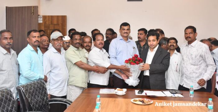 कणकवली (प्रतिनिधी) : महाराष्ट्र राज्याच्या मत्स्योद्योग आणि बंदरे विकास मंत्री नामदार नितेश राणे यांची शिवसेना उपजिल्हाप्रमुख हरेश पाटील यांनी नवीन कुर्ली प्रकल्पग्रस्त संघटनेच्या कार्यकर्त्यांसह कणकवली शासकीय विश्रामगृह येथे सदिच्छा भेट घेत पुष्पगुच्छ देऊन त्यांचे स्वागत करण्यात आले. सदर भेटी दरम्यान नवीन कुर्ली गावाच्या विकासाचा दृष्टीने काही कामे असतील तर आवश्यक ते सहकार्य करण्याचे मंत्री नितेश राणे यांनी सांगितले. यावेळी नवीन कुर्ली प्रकल्पग्रस्त संघटनेचे रविंद्र नवाळे,आनंद सावंत, सखाराम हूंबे, आशिष पेडणेकर,चंद्रकांत तेली,एकनाथ चव्हाण, राजेंद्र तेली,गणेश तेली,दाजी सुतार,अनंत दळवी, शंकर राणे,संतोष सुद,अंकुश पोवार,मधुकर परब,जयवंत कामतेकर,निखिल चव्हाण,प्रवीण पार्टे, मनोहर कदम,शांताराम पार्टे,जनार्दन पोवार,विजय परब ,संतोष हसणेकर उपस्थित होते.