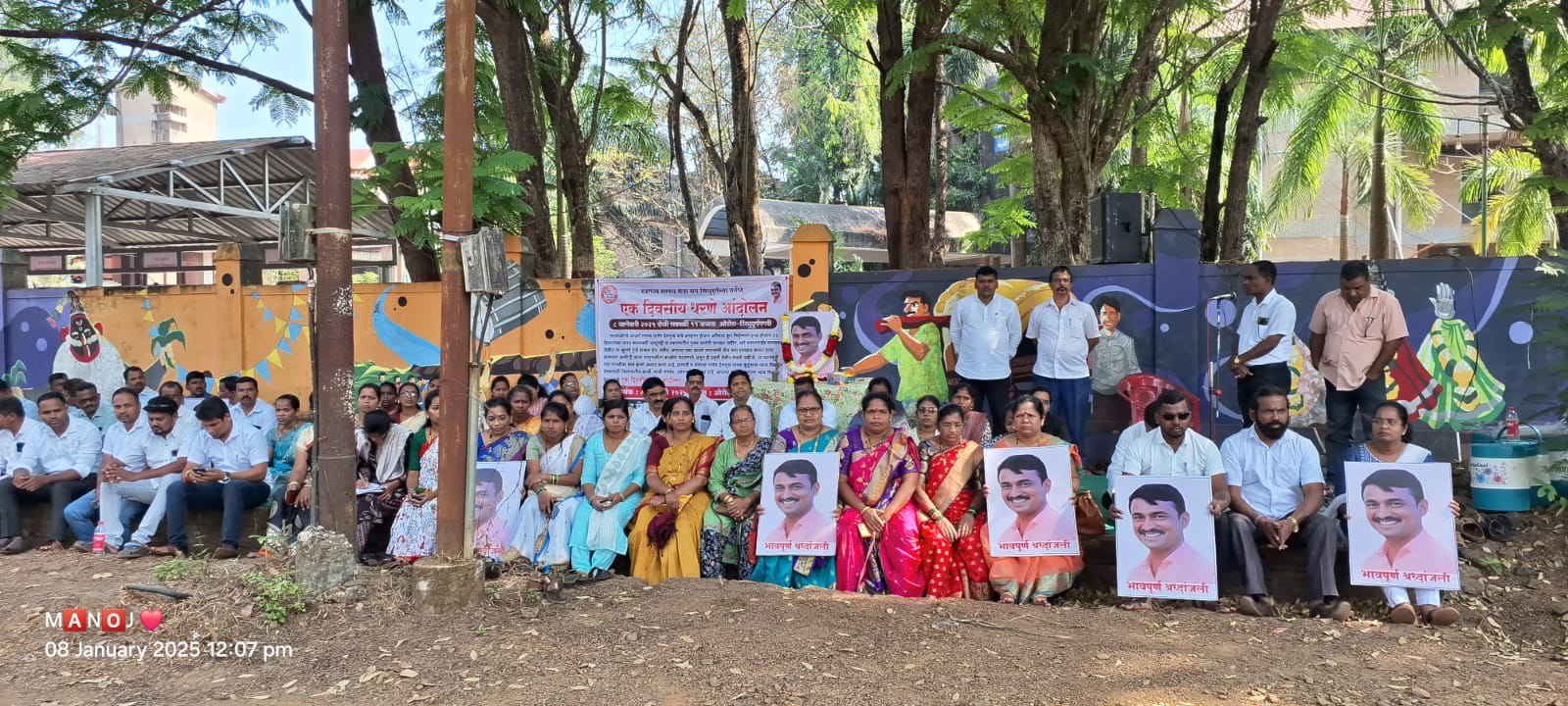 बीड जिल्ह्यातील मस्स्याजोगचे सरपंच संतोष देशमुख यांची ९ डिसेंबर २०२४ रोजी हत्या करण्यात आली. या घटनेला १ महीना कालावधी झाला तरी त्यांच्या मारेकऱ्यांना अटक करण्यात आलेली नाही. ही राज्याच्या इतिहासातील दुर्दैवी घटना आहे. या विरोधात राज्यभर तीव्र पडसाद उमटले आहेत. विविध ठिकाणी आंदोलने केली जात आहेत. सिंधुदुर्ग जिल्ह्यातही या घटनेचा निषेध व्यक्त करण्यासाठी आज सिंधुदुर्ग जिल्हा सरपंच सेवा संघाच्या वतीने जिल्हाधिकारी कार्यालयासमोर धरणे आंदोलन छेडण्यात आले. यावेळी उपस्थित सरपंचांनी कै. संतोष देशमुख यांच्या प्रतिमेला पुष्पहार अर्पण करून त्यांना श्रद्धांजली वाहिली. काही मान्यवर सरपंचांनी आपल्या भावना यावेळी व्यक्त केल्या. तसेच संतोष देशमुख यांच्या मारेकरी आरोपींना तत्काळ अटक करावी आणि दोषींना कठोर शिक्षा करावी याबाबतचे निवेदन मुख्यमंत्री देवेंद्र फडणवीस यांना जिल्हाधिकाऱ्यांमार्फत देण्यात आले. यावेळी सरपंच सेवा संघाचे जिल्हाध्यक्ष प्रवीण गवस, कसाल सरपंच राजन परब, अनिल शेटकर, अरविंद साटम, कावेरी चव्हाण, श्रिया ठाकूर यांच्यासह अनेक सरपंच, उपसरपंच, ग्रामपंचायत सदस्य या आंदोलनात सहभागी झाले होते.
