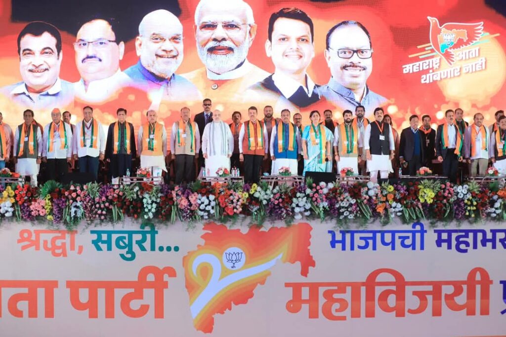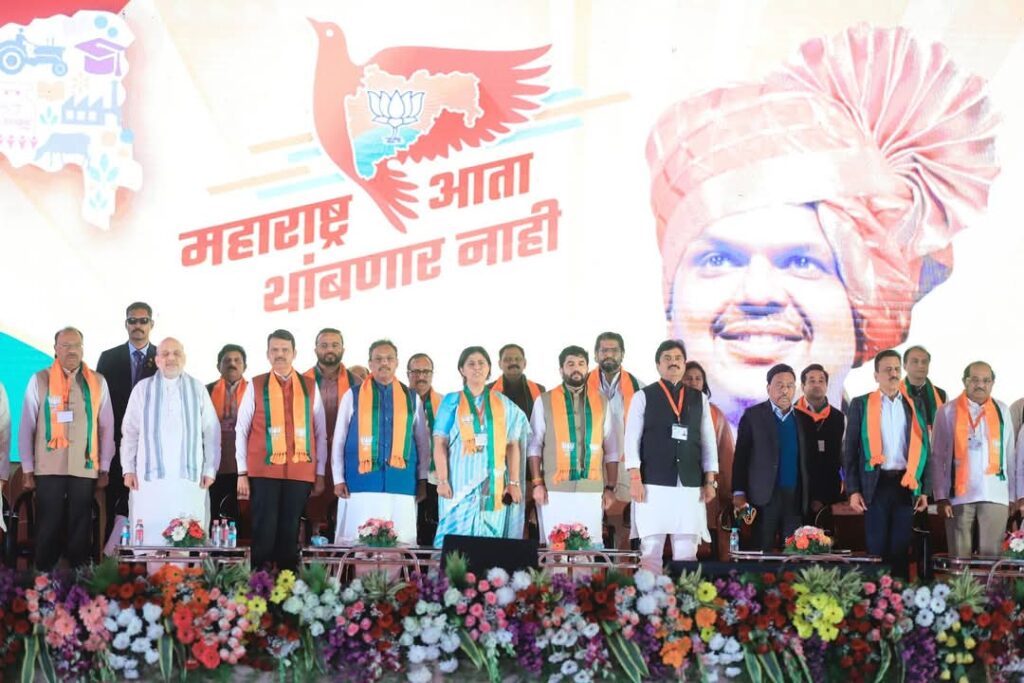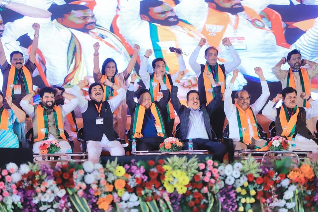 शिर्डी (प्रतिनिधी) : शिर्डी येथे देशाचे यशस्वी गृहमंत्री अमित शाह आणि महाराष्ट्राचे लोकप्रिय मुख्यमंत्री देवेंद्र फडणवीस यांच्या नेतृत्वाखाली भारतीय जनता पार्टीचे महाविजय प्रदेश अधिवेशन पार पडले. याप्रसंगी राज्याचे कॅबिनेट मंत्री व भाजप प्रदेशाध्यक्ष चंद्रशेखर बावनकुळे, भाजपा महाराष्ट्र प्रदेश कार्यकारी अध्यक्ष रवींद्र चव्हाण, भाजपा राष्ट्रीय सह संघटन मंत्री शिवप्रकाश, भाजप राष्ट्रीय सरचिटणीस विनोद तावडे, भाजपचे केंद्र व राज्यातील मंत्री, भाजपचे खासदार, आमदार, ज्येष्ठ नेते, कार्यकर्ते, पदाधिकारी आणि इतर मान्यवर मंडळी उपस्थित होते.