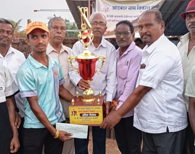 मसूरे (प्रतिनिधी) : देवगड तालुक्यातील आडबंदर येथील जय हनुमान क्रिकेट संघाच्या वतीने आयोजित क्रिकेट स्पर्धेत गोंदापूर पोयरे संघाने काळभैरव हिंदळे संघाचा पराभव करत विजेतपद पटकावले. स्पर्धेचा बक्षीस वितरण समारंभ माजी सभापती तथा उद्योजक भाई पारकर, ग्रा. सदस्य धर्माजी आडकर, रविना मालडकर, निकिता कांदळगावकर, अध्यक्ष वामन आडकर, नारायण आडकर यांच्या प्रमुख उपस्थितीत झाला. मालिकावीर गुरुनाथ दुखंडे(गोंदापूर), उत्कृष्ट फलंदाज गुरुनाथ दुखंडे (गोंदापूर),