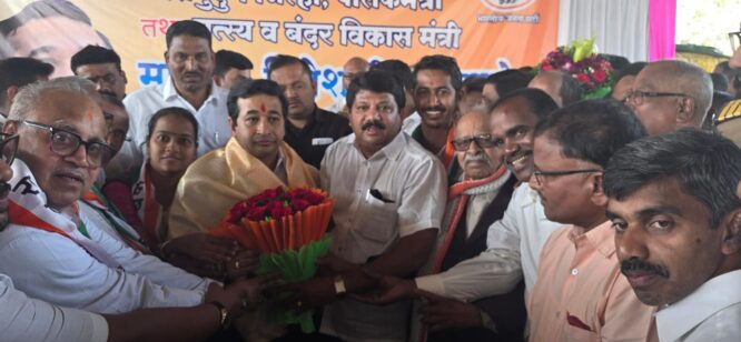 पालकमंत्री नितेश राणेंचे राष्ट्रवादी काँग्रेस जिल्हाध्यक्ष अबिद नाईक यांनी बांदा येथे केले स्वागत