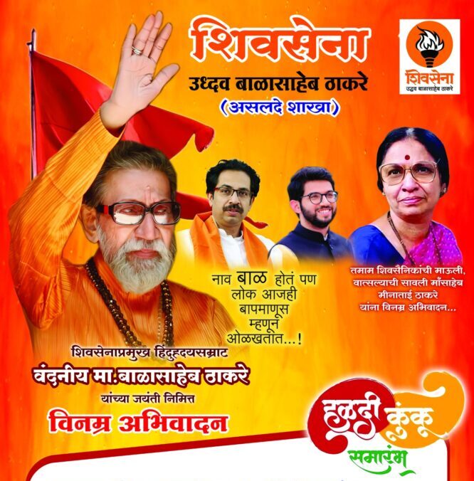 नांदगाव (प्रतिनिधी) : हिंदुहृदय सम्राट शिवसेनाप्रमुख बाळासाहेब ठाकरे यांच्या जयंतीनिमित्त शिवसेना उद्धव बाळासाहेब कणकवली तालुक्यातील असलदे शिवसेना शाखेत ठाकरे पक्षाच्या वतीने सकाळी दहा वाजता हिंदुरुदय सम्राट शिवसेनाप्रमुख बाळासाहेब ठाकरे यांची जयंती साजरी करण्यात येईल व दुपारी चार वाजता हळदी कुंकू समारंभाचे आयोजन करण्यात आले आहे. तरी सदर कार्यक्रमास असलदे गावातील महिलांनी उपस्थित रहावे असे आवाहन सारिका खरात कासारडे महिला विभाग प्रमुख, संजय डगरे शिवसेना शाखाप्रमुख, स्वरा डगरे महिला शाखा प्रमुख, सपना डामरे ग्रा प सदस्य शिवसेना उद्धव बाळासाहेब ठाकरे पक्षाचे वतीने आवाहन करण्यात आले.
