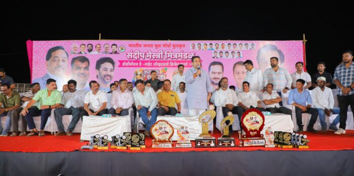 संदीप मेस्त्री मित्रमंडळाच्या वतीने मागील 25 वर्ष सातत्याने विविध सामजिक सांस्कृतिक व शैक्षणिक उपक्रम राबविले जात आहेत. जिल्ह्यात आदर्शवत असलेल्या संदीप मेस्त्री मित्रमंडळाच्या वतीने रौप्य महोत्सवी वर्ष साजरे केले जात असून यावर्षी प्रथमच प्रकाश झोतातील स्पर्धेचे आयोजन करण्यात आले आहे. या स्पर्धेचे प्रथम पारितोषिक एक लाख रुपये असून द्वितीय पारितोषिक पन्नास हजार रुपये व आकर्षक चषक असे स्वरूप आहे. या क्रिकेट स्पर्धेत जिल्ह्यातील 16 संघांनी सहभाग घेतला असून गोवा व महाराष्ट्र राज्यातील नामांकित खेळाडू आयकॉन म्हणून या स्पर्धेत खेळत आहेत. या स्पर्धेचा अंतिम दिवस रविवार दिनांक 26 जानेवारी रोजी असून या अंतिम सोहळ्यास सर्व क्रीडा रसिकांनी उपस्थित रहावे असे आवाहन संदीप मेस्त्री मित्र मंडळाच्या वतीने करण्यात आले आहे. कार्यक्रमाचे सूत्रसंचालन अभिनेते निलेश पवार यांनी केले तर उपस्थितांचे आभार मिलिंद मेस्त्री यांनी मांडले.