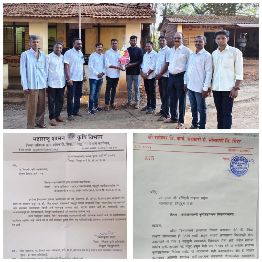 चिंदर सोसायटीने माजी पालकमंत्री रविंद्र चव्हाण यांच्याकडे चिंदर गावांसाठी स्वतंत्र कृषी सहाय्यकाची केली होती मागणी
