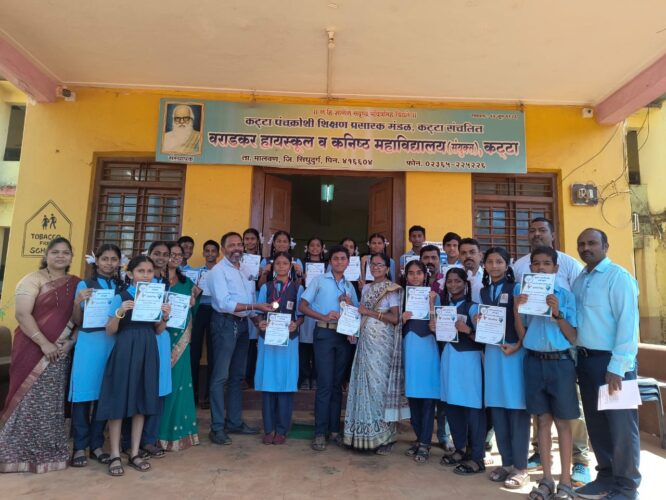 यावेळी वराडकर हायस्कूल व कनिष्ठ महाविद्यालय (संयुक्त) कट्टा या केंद्रावर झालेल्या राज्यस्तरीय भूगोल प्रज्ञाशोध परीक्षां 2024-25 च्याविशेष गुणवंत विद्यार्थी कु. हर्षदा किसन हडलगेकर (सुवर्ण पदक), कु.मयुरीका अमित मांजरेकर (रौप्य पदक), कुमार भिवा रमाकांत गावडे (कास्य पदक) यांनी उल्लेखनीय कामगिरी केल्याबद्दल यांचा कट्टा पंचक्रोशी शिक्षण प्रसारक मंडळ कट्टाचे अध्यक्ष अजयराज वराडकर व सचिव विजयश्री देसाई यांच्या हस्ते तसेच प्रशालेच्या मुख्याध्यापिका सौ. देवयानी गावडे, पर्यवेक्षक महेश भाट यांच्या हस्ते सन्मान करण्यात आला.