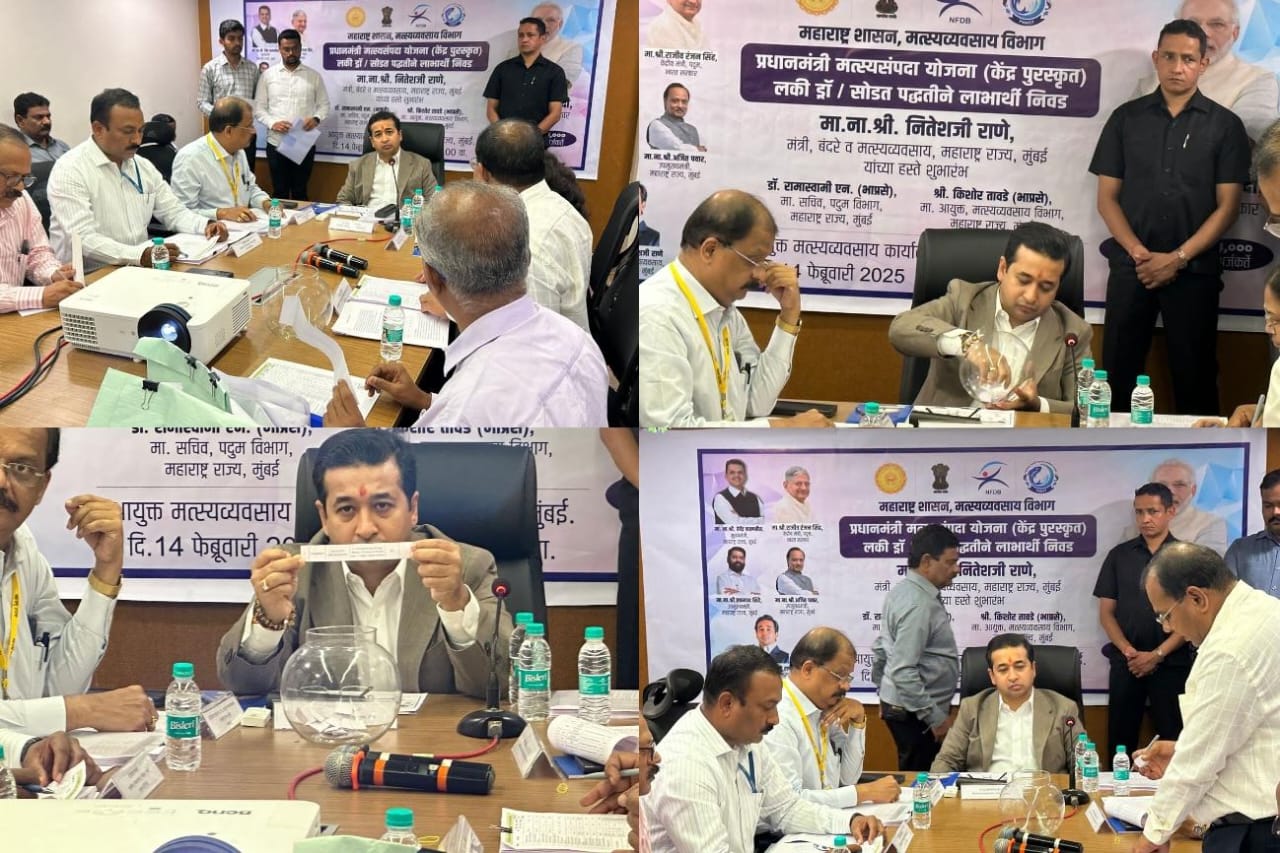 मुंबई (प्रतिनिधी) : प्रधानमंत्री मत्स्य संपदा योजनेअंतर्गत विविध लाभांचे वाटप करण्यासाठी आज लॉटरी पद्धतीने लाभार्थ्यांची निवड करण्यात आली. मत्स्य व्यवसाय मंत्री नितेश राणे यांच्या हस्ते संपन्न झालेल्या लकी ड्रॉमध्ये या लाभार्थ्यांची निवड करण्यात आली. मित्तल टॉवर येथील मत्स्य व्यवसाय आयुक्तालयामध्ये या लकी ड्रॉचे आयोजन करण्यात आले होते. यावेळी मोहित आणि रोहित या दोन लहामुलांच्या हस्तेही काही लाभार्थ्यांच्या चिठ्ठ्यांची निवड करण्यात आली.यावेळी मत्स्य व्यवसाय आयुक्त किशोर तावडे, मत्स्य उद्योग महामंडळाच्या व्यवस्थापकीय संचालक अनिता मेश्राम यांच्यासह विभागाचे अधिकारी, कर्मचारी उपस्थित होते.या लकी ड्रॉमध्ये प्रधानमंत्री मत्स्य संपदा योजनेतील 17 विविध योजनांच्या एकूण 234 लाभार्थ्यांची निवड करण्यात आली. एकूण 89 कोटी 11 लाख रुपयांचा लाभ या लाभार्थ्यांना दिला जाणार आहे. गोड्या पाण्यातील मत्स्य बीज पालन या महिलागटासाठी एकूण 6 लाभार्थ्यांची निवड करण्यात आली आहे. 25 लाख रुपये प्रती लाभार्थी या प्रमाणे एकूण दीड कोटी रुपयांचा लाभ या योजनेतून दिला जाणार आहे. सर्वसाधारण गटातील प्रमोशन ऑफ रिक्रेशनल फिशरीज या 50 लक्ष रुपयांच्या योजनेचा लाभ एका लाभार्थ्याला देण्यात आला. मत्स्य तलाव जैविक प्रकल्प या 50 लक्ष रुपयांच्या प्रकल्पाचा लाभ अनुसुचित जमातीच्या 6 लाभार्थ्यांना आणि 32 महिला लाभार्थ्यींची निवड करण्यात आली. तसेच मत्स्य तलाव योजनेसाठी 6 महिला लाभार्थ्यांची निवड करण्यात आली. या योजनेमध्ये प्रत्येकी 25 लक्ष या प्रमाणे एकूण दीड कोटी रुपयांचा लाभ दिला जाणार आहे. मध्यम मत्स्य जैविक प्रकल्पासाठी 27 लाभार्थी निवड करण्यात आली. प्रत्येकी 25 लक्ष रुपये याप्रमाणे एकूण 6 कोटी 75 लक्ष रुपयांचा लाभ दिला जाणार आहे. जलाशयामध्ये पिंजरा पद्धतीने मत्स्य पालनासाठी 22 लाभार्थ्यांची निवड करण्यात आली. या योजनेत प्रत्येकी 54 लक्ष या प्रमाणे एकूण 11 कोटी 88 लक्ष रुपयांचा लाभ दिला जातो. 10 टन क्षमतेचे शितगृह आणि बर्फ कारखाना उभारणे या योजनेसाठी 5 महिला लाभार्थींची निवड करण्यात आली. या योजनेत प्रती लाभार्थी 40 लक्ष या प्रमाणे एकूण 2 कोटींचा लाभ दिला जातो. 20 टन क्षमतेचे शितगृह आणि बर्फ कारखाना यासाठी 4 महिला लाभार्थी, प्रती लाभार्थी 80 लक्ष या प्रमाणे 3 कोटी 20 लक्ष रुपयांचा लाभ दिला जाणार आहे. तर दीड कोटी रुपयांच्या 50 टन क्षमतेचे शितगृह आणि बर्फ कारखाना यासाठी एका महिला लाभार्थीची निवड करण्यात आली. 6 लाभार्थींना प्रत्येकी 25 लक्ष रुपयांच्या रेफ्रिजेरेटेड व्हेईकलचा लाभ देण्यात येणार आहे. या योजनेत एकूण दीड कोटींच्या लाभाचे वाटप होणार आहे. इन्सुलेटेड व्हेईकल गटात 16 लाभार्थ्यांची निवड करण्यात आली