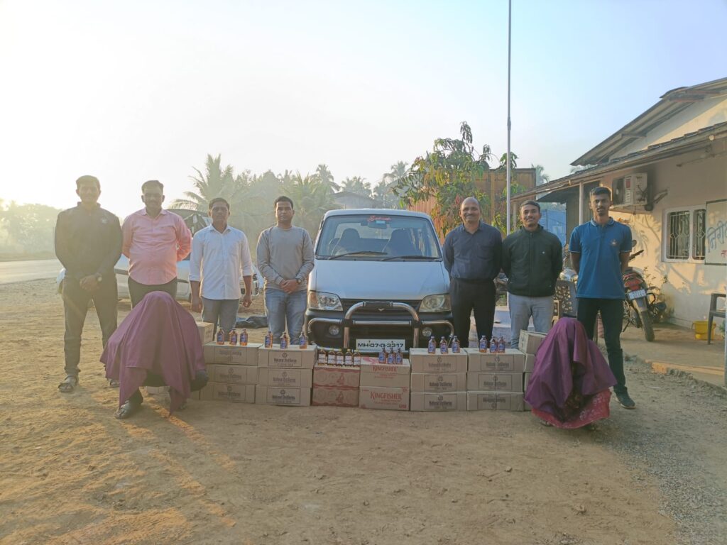 सावंतवाडी (प्रतिनिधी) : राज्य उत्पादन शुल्क, तपासणी नाका इन्सुली, ता. सावंतवाडी, जि. सिंधुदुर्ग पथकाने तेरेखोल नदी पुलावर आरोसबाग येथे अवैधरित्या परराज्यातील मद्याची वाहतुक करतांना चारचाकी वाहनासह अंदाजे. 4,14,240/- रु. किंमतीचा मुद्देमाल जप्त केला. मनोज शेवरे, अधीक्षक, राज्य उत्पादन शुल्क, सिंधुदुर्ग यांच्या मार्गदर्शनाखाली निरीक्षक, राज्य उत्पादन शुल्क, तपासणी नाका इन्सुली पथकाने मिळालेल्या गोपनीय बातमीनुसार तेरेखोल नदी पुलावर आरोसबाग, ता. सावंतवाडी, जि. सिंधुदुर्ग येथे दि.16 फेब्रुवारी 2025 रोजी पहाटे अवैध मद्य वाहतुकीच्या संशयीत वाहनांची तपासणी करीत असताना मारुती इको चारचाकी वाहन क्र.MH-07-Q-3317 या चारचाकी वाहनाच्या पाठीमागील हौद्यामध्ये गोवा बनावटीच्या विदेशी मद्याच्या विविध बॅन्डचे 24 बॉक्स (1104 बाटल्या) अवैध मद्यसाठा मिळून आला. सदर प्रकरणी वाहन चालक गणेश लक्ष्मण चव्हाण (वय 35 वर्षे, रा. सबनीसवाडा, सावंतवाडी) व सिसिल जॉन फेराव (55 वर्षे, रा. सबनीसवाडा, सावंतवाडी, जि. सिंधुदुर्ग) यांना मुद्देमालासह ताब्यात घेण्यात आले. सदर गुन्ह्यामध्ये अं.रु.1,14,240/- किंमतीचे मद्य व रु.3,00,000/- किंमतीचे चारचाकी वाहन असा एकुण अं.रु.4,14,240/- किंमतीचा मुद्देमाल जप्त करण्यात आला असून महाराष्ट्र दारुबंदी कायदा 1949 अंतर्गत गुन्हा नोंदविण्यात आला. सदर कारवाई भानुदास खडके, निरीक्षक, प्रदीप रास्कर, दुय्यम निरीक्षक,धंनजय साळुंखे, दुय्यम निरीक्षक, विवेक कदम, दुय्यम निरीक्षक, रणजीत शिंदे, जवान नि. वाहन चालक, दिपक वायदंडे, जवान, सतिश चौगुले, जवान,सागर सुर्यवंशी, जवान, अभिषेक खत्री, जवान यांनी केली. सदर प्रकरणी पुढील तपास धंनजय साळुंखे, दुय्यम निरीक्षक तपासणी नाका इन्सुली हे करीत आहेत.
