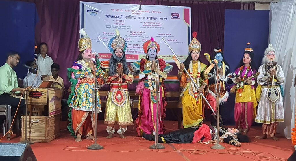 कणकवली (प्रतिनिधी) : शनिवार, दि.१५ फेब्रुवारी २०२५ रोजी पार पडलेल्या कणकवली तालुक्यातील एम. व्ही. डी. कला अकादमी, ओसरगांव आयोजित कोकणभूमी साहित्य कला संमेलन २०२५ मधील बाल दशावतार स्पर्धेमध्ये कळसुली शिक्षण संघ, मुंबईचे कळसुली इंग्लिश स्कूल, कळसुली मधील मुलींनी सादर केलेल्या ‘महिषासूर मर्दिनी’ या दशावतार नाटकाला प्रथम क्रमांक मिळाला असून ते स्पर्धेतील फिरत्या चषकाचे पहिले मानकरी ठरले आहेत. जेष्ठ कवी अजय कांडर यांच्या अध्यक्षतेखाली संपन्न झालेल्या या संमेलनाला प्रमुख अतिथी – लेखिका डॉ. शकुंतला भरणे यांबरोबर जिल्हा पोलीस अधीक्षक – सौरभ अग्रवाल, अतिरिक्त जिल्हा पोलीस अधीक्षक – ऋषिकेश रावले, उपविभागीय पोलीस अधिकारी – घनश्याम आढाव, जिल्हा माध्यमिक शिक्षण अधिकारी – कविता शिंपी तसेच सुरज बांदेकर, कवी किशोर कदम आणि कॅप्टन विलास सावंत इ. मान्यवर उपस्थित होते. या स्पर्धेचे परीक्षण मयूर गवळी व रेडकर यांनी केले. कोकणच्या मातीतील पारंपारिक दशावतारी नाट्यकलेचा वारसा जोपसण्याच्या उद्देशाने कळसुली हायस्कूलच्या इयत्ता आठवी व इयत्ता नववीतील मुलींनी दशावतार नाटक सादर केले व आपल्या उत्तम अभिनयाने प्रेक्षकांची मने जिंकली. या नाटकातील प्रमुख महिषासुराची भूमिका मेघा दळवी हिने उत्तमरित्या साकारत सारा रंगमंच दणानून सोडला तर वेदिका मेस्त्री हिने नारदाच्या भूमिकेतून सुमधुर गायनाने साऱ्यांना मंत्रमुग्ध केले. या नाटकाचे दिग्दर्शन सी.जी. चव्हाण, सी.सी. चव्हाण आणि अमर पवार यांनी केले. या बहारदार सादरीकरणासाठी सर्वांनीच या विद्यार्थ्यांचे कौतुक केले. विशेष म्हणजे यावेळी माध्यमिक शिक्षणाधिकारी कविता शिंपी यांनी सर्व विद्यार्थ्यांना खास भेटून त्यांच्या कलेचे कौतुक केले. सदर नाटकाच्या यशस्वीतेसाठी सर्वच पालकांचे चांगले सहकार्य लाभले. यामध्ये प्रशांत दळवी यांनी मोलाची भूमिका बजावली. सदर विद्यार्थ्यांचे आणि मार्गदर्शक शिक्षकांचे मुख्याध्यापक व्ही. व्ही. वगरे , तसेच संस्था पदाधिकारी पुरुषोत्तम दळवी (अध्यक्ष – कळसुली शिक्षण संघ मुंबई ), सूर्यकांत राजाराम दळवी (कार्याध्यक्ष), विजय सावंत (सरचिटणीस), प्रकाश दळवी (सल्लागार) तसेच स्कूल कमिटी चेअरमन के.आर. दळवी, शिक्षक पालक संघ उपाध्यक्ष, शाळा व्यवस्थापन समिती अध्यक्ष आणि इतर सदस्य, पालक, ग्रामस्थ शिक्षक – शिक्षकेतरवृंद आजी-माजी विद्यार्थी यांनी अभिनंदन करत शुभेच्छा दिल्या.
