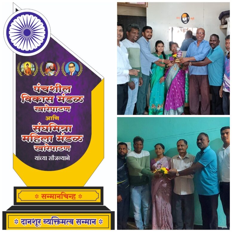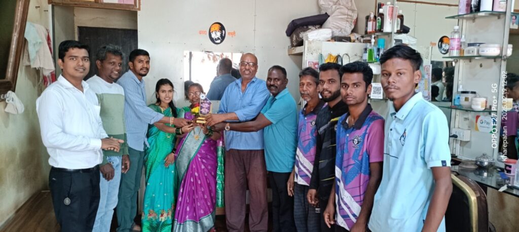तर खारेपाटण येथे एक छोटासा सलून व्यवसाय करणारे अनंत चव्हाण यांनी देखील आपल्या चार मुलांची लग्न केली असून या चारी मुलांच्या लग्नात नातेवाईक व मित्रमंडळी कडून मिळालेला सर्व आर्थिक रकमेचा आहेर अर्थात भेट म्हणून मिळालेले एकूण अडीज लाख एवढी सर्व रक्कम जिल्ह्यातील अनाथ व वृद्ध आश्रमासाठी दान करून समाजात एक वेगळा सामाजिक दातृत्वाचा संदेश दिला आहे. त्यांच्या देखील कार्याची मंडळाने दखल घेऊन अनंत चव्हाण यांच्या संपूर्ण परिवाराचा आज छत्रपती शिवाजी महाराज जयंती दिनी आकर्षक सन्मान चिन्ह देऊन सत्कार करण्यात आला.