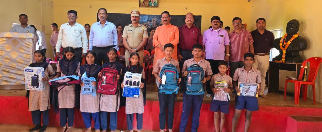 वैभववाडी (प्रतिनिधी) : १९ फेब्रुवारी शिवजयंती निमित्त राज्यभरात सर्वत्र विविध कार्यक्रमांचे व उपक्रमांचे आयोजन करण्यात आले आहे. या शिवजयंती सोहळ्याच्या निमित्ताने अर्जुन रावराणे विद्यालय, जयेंद्र दत्ताराम रावराणे सेमी इंग्लिश स्कूल व कै.हेमंत केशव रावराणे कनिष्ठ महाविद्यालयात देखील विविध कार्यक्रमांचे आयोजन करण्यात आले होते. या शिवजयंती सोहळ्याचे औचित्य साधून वैभववाडी पोलिस ठाण्याचे पोलिस निरीक्षक सुनील अवसरमोल यांच्या वतीने प्रशालेतील गरिब गरजू विद्यार्थ्यांना त्यांना आवश्यक असलेल्या शालेय साहित्याचे वाटप या प्रसंगी करण्यात आले.