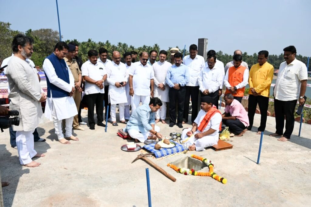 पालकमंत्री नितेश राणे छत्रपती शिवाजी महाराज यांच्या राजकोट येथील पुतळ्याचा ‘पायाभरणी समारंभ’