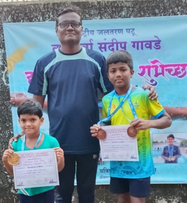 सिंधुदुर्गनगरी (प्रतिनिधी) : आय एम सी क्लब ऑफ इचलकरंजी आयोजित इन्व्हिटेशनल राज्यस्तरीय जलतरण स्पर्धा 2025 ही स्पर्धा 23 फेब्रुवारी 2025 रोजी इचलकरंजी नगरपंचायत येथील शंकरराव पुजारी ओलंपिक साईज जलतरण तलाव येथे पार पडली. या स्पर्धेत सिंधुदुर्गनग्री येथील सहा वर्षीय चिमुकल्या लीनांशा हितेश नाईक हीने उत्कृष्ट कामगिरी करत सुवर्णपदक पटकावले आहे. या स्पर्धेत लीनांशा हितेश नाईक हिने सहा वर्षाखालील मुलींमध्ये 50 मीटर फ्रीस्टाइल गटात प्रथम क्रमांक मिळविला आहे. अथर्व दिनेश सावंत याने 14 वर्षे खालील मुले गटात 50 मीटर फ्रीस्टाइलमध्ये तृतीय क्रमांक आणि 50 मीटर ब्रेस्ट स्ट्रोकमध्ये तृतीय क्रमांक मिळविला आहे. या स्पर्धेत मार्क जॉन्सन डिसूजा याने देखील उत्कृष्ट कामगिरी केली आहे. त्यांना जलतरण प्रशिक्षक प्रवीण सुलोकार यांचे मार्गदर्शन लाभले. विजयी स्पर्धकांना गंगाराम बर्गे इव्हेंट डायरेक्टर यांच्या हस्ते गौरविण्यात आले. जिल्हा क्रीडा अधिकारी सिंधुदुर्ग विद्या शिरस, सहाय्यक क्रीडा अधिकारी सचिन रणदिवे, सहाय्यक क्रीडा अधिकारी राहुल गायकवाड, क्रीडा अधिकारी विजय शिंदे यांनीही या स्पर्धकांचे अभिनंदन केले आहे.