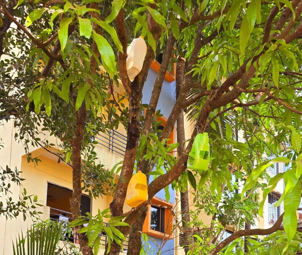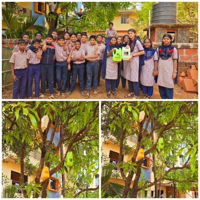 वैभववाडी (प्रतिनिधी) : वाढत्या शहरीकरणाबरोबर चिमण्यांची संख्या कमी झाली. मात्र, त्यांचे अस्तित्व टिकविण्यासाठी आणि सोबत अन्य पक्ष्यांचाही उन्हाळा सुसह्य करण्यासाठी अर्जुन रावराणे विद्यालय व जयेंद्र दत्ताराम रावराणे सेमी इंग्लिश स्कूल च्या वतीने जागतिक चिमणी दिनानिमित्त टाकाऊ वस्तूंपासून टिकाऊ या संकल्पनेवर आधारित शालेय परिसरात पक्षांसाठी पाणवठा हा उपक्रम राबवण्यात आला. शहरीकरणामुळे चिमण्यांची संख्या दिवसेंदिवस कमी होत आहे. चिमणीसारखे दिसणारे अनेक काळ्या, करड्या रंगाचे पक्षी सध्या विद्यालयाच्या प्रांगणात आढळतात. पण चिमणी नजरेस पडणे दुर्मिळ झाले आहे. वाढता उकाडा लक्षात घेता माणसाप्रमाणेच सर्वच पक्ष्यांनाही पाण्याची नितांत गरज असते. त्यामुळे अर्जुन रावराणे विद्यालय व जयेंद्र दत्ताराम रावराणे सेमी इंग्लिश स्कूल च्या सांस्कृतिक विभाग व हरित सेना विभागाच्या वतीने प्रशालेच्या आवारातील झाडांवर पक्षांसाठी टाकाऊ वस्तूंपासून टिकाऊ या संकल्पनेवर आधारित पाण्याची भांडी ठेवण्यात आली आहेत. नित्य नियमाने त्यातील पाणी बदलता येईल अशा रितीने ती शालेय परिसरात व परिसरातील झाडांवर ठेवण्यात आली आहेत.