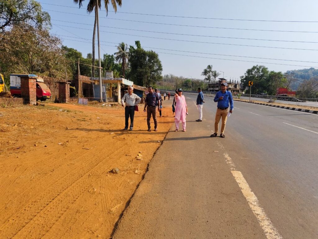 खारेपाटण (प्रतिनिधी) : मुंबई – गोवा राष्ट्रीय महामार्गावरील खारेपाटण या गावात महामार्गाचे काम पूर्ण झाल्यानंतर सुधा रस्त्याच्या दोन्ही बाजूने अत्यावश्यक असणाऱ्या सर्व्हिस रोड चे काम भूसंपादन करण्यात आले असताना देखील अपूर्ण ठेवण्यात आले होते.आता मात्र या अपूर्ण असलेल्या सर्व्हिस रोड चे काम लवकरच पूर्ण करण्यात येणार असून याबाबत नुकतेच महामार्ग प्राधिकरणाच्या वतीने संबधीत खात्याच्या अधिकाऱ्यांच्या उपस्थित संभाव्य सर्व्हिस रोड कामाची पाहणी करण्यात आली. यावेळी खारेपाटण सरपंच सौ प्राची ईसवलकर, उपसरपंच महेंद्र गुरव,महाराष्ट्र राज्य जीवन प्राधिकरणाचे प्रतिनिधी श्री जाधव, महाराष्ट्र राज्य विद्युत विभगाचे श्री खोत, महाराष्ट्र राज्य सार्वजनिक बांधकाम विभाग खारेपाटण उपविभगिय कार्यालयाचे अभियंता बी जी कुमावत,खारेपाटण ग्रामविकास अधिकारी जि.सी. वेंगुर्लेकर आदी प्रमुख पदाधिकारी व अधिकारी उपस्थित होते.