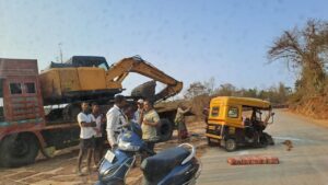 तरेळे कोल्हापूर राष्ट्रीय महामार्गांवर शुकनदी पुलाचे काम चालू आहे. त्यामुळे वैभववाडी तहसीलदार कार्यालय ते सोनाळी असा पर्यायी कच्चा रस्ता तयार कारण्यात आला आहे. शुकनदी जवळ गणपती साणा येथे रस्ता अरुंद असून त्या ठिकाणी एकरी वाहतूक सुरु असून मोठमोठे खड्डे पडले आहेत. बुधवारी पहाटे धाराशिव पणजी बस हे खड्डे चुकवत असताना रस्त्याकडेला असलेल्या दगडावर जाऊन आदळली. यात एस. टी च्या दर्शनी भागाचे मोठे नुकसान झाले आहे. चालकाच्या प्रसंगावधानामुळे एस टी बस मधील प्रवाशांना कोणत्याही प्रकारची दुखापत झालेली नाही.