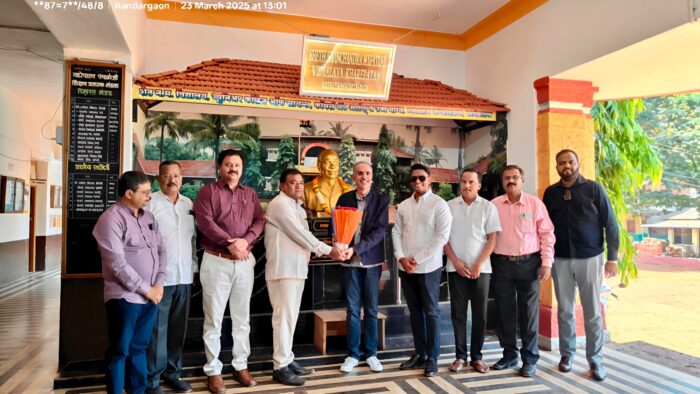 खारेपाटण (प्रतिनिधी) : आंतरराष्ट्रीय स्तरावरील हॉटेल ली मॅरियेट समूहाचे मुख्य संचालक प्रदीप शिंदे यांनी नुकतीच खारेपाटण हायस्कूलला सदिच्छा भेट दिली. व शाळेच्या एकूण व्यवस्थापन विषयी माहिती जाणून घेत समाधान व्यक्त केले. याप्रसंगी त्यांचे खारेपाटण पंचक्रोशी शिक्षण प्रसारक मंडळाचे अध्यक्ष प्रवीण लोकरे यांनी पुष्पगुच्छ देऊन स्वागत केले. यावेळी संस्थेचे उपाध्यक्ष भाऊ राणे, सचिव – महेश कोळसुलकर, विश्वस्त प्रशांत गुळेकर, विजय देसाई, उद्योजक मनोज गुळेकर यांसह शेठ नवीनचंद्र मफतलाल विद्यालय खारेपाटण व ज्यूनियर कॉलेज खारेपाटण आणि प्लस टू व्यवसाय अभ्यासक्रमाचे प्राचार्य संजय सानप तसेच शिक्षक व शिक्षकेतर कर्मचारी उपस्थित होते. संपूर्ण शालेय परिसर पाहून प्रदीप शिंदे हे भारावून गेले.