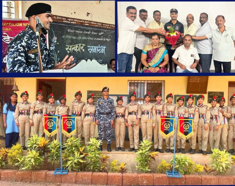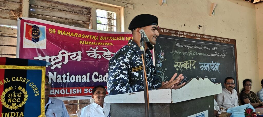 फोंडाघाट (प्रतिनिधी) : आज माझ्या शाळेतील एन.सी.सी. कॅडेटच्या उपस्थितीत आणि गुरुजनांचे हस्ते होत असलेला सत्कार,माझ्या नौसेनेतील यशाचा प्रेरणादायी पाया ठरेल. असे उद्गार प्रथमेश लाड यांनी व्यक्त केले. न्यू इंग्लिश स्कूल फोंडाघाटच्या एन.सी.सी. च्या पहिल्या बॅचचा विद्यार्थी, प्रथमेश प्रमोद लाड याची भारतीय नौसेनेमध्ये निवड झाल्यानंतर, अन् बेसिक प्रशिक्षण यशस्वीरित्या पूर्ण करून तो गावी आल्यावर, त्याचा शाळेमध्ये सत्कार करण्यात आला. यावेळी तो बोलत होता. प्रशालेतील कर्मचारी प्रमोद लाड यांचा हा मुलगा ! आपल्या सुपुत्रांने आपल्या गावाचे, शाळेचे नाव उंचावल्याचा सार्थ अभिमान, वडील प्रमोद यांच्या डोळ्यातून ओसंडत होता.