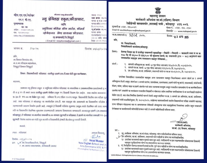 मात्र सिंधुदुर्ग अधीक्षक अभियंता एसटी विभाग व जिल्हाधिकारी कार्यालय अद्याप निद्रिस्त आहे ? शनिवार तारीख पाच एप्रिल पासून परीक्षा सुरू होत आहेत. पालकमंत्री यांनी कणकवली आगाराकडे मिनी बसेस उपलब्ध केल्या आहेत. तरी शनिवारपासून कणकवली– हसणे अशी बस गांभीर्याने सुरू करण्याचे आदेश जिल्हाधिकाऱ्यांनी व अधीक्षक अभियंता एसटी विभाग यांना देऊन एस टी सुरू करून विद्यार्थ्यांचे नुकसान टाळावे अशी आग्रही मागणी या मार्गावरील पालकांनी केली आहे. सुरक्षित एसटी वाहतूक सुरू न केल्याने विद्यार्थ्यांचे वर्ष वाया गेलेस,शासन जबाबदार राहील याची नोंद घ्यावी अशी ही अपेक्षा पालकांनी केली आहे…
