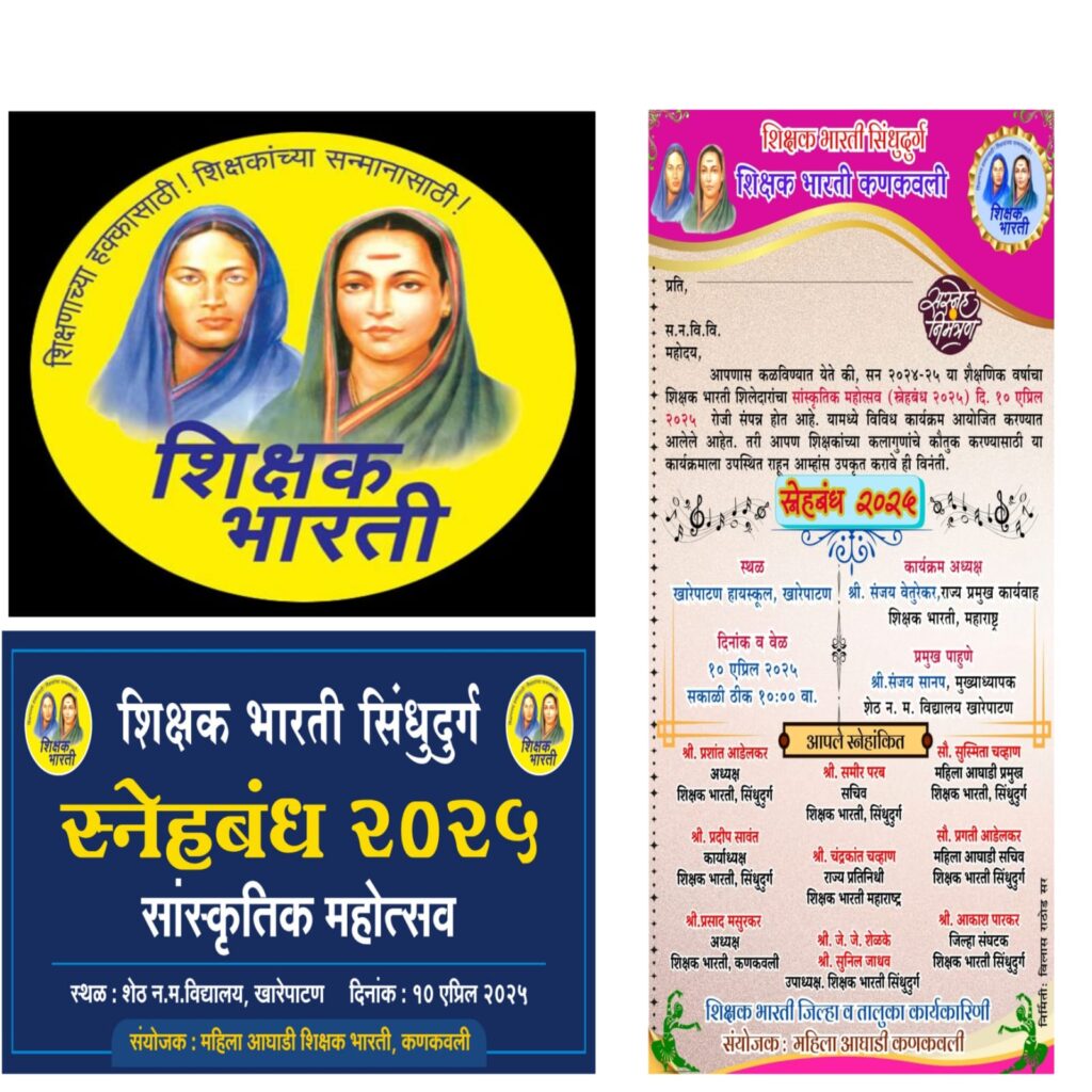 तळेरे (प्रतिनिधी) : शिक्षक भारती सिंधुदुर्ग व शिक्षक भारती महिला आघाडी कणकवली तालुक्याच्यावतीने शेठ.न.म.विद्यालय खारेपाटण येथे दि. १० एप्रिल रोजी स. १० वा.सांस्कृतिक महोत्सव अर्थात” स्नेहबंध” कार्यक्रमाचे आयोजन करण्यात आले आहे. या कार्यक्रमाचे अध्यक्षस्थानी शिक्षक भारती महाराष्ट्र राज्याचे प्रमुख कार्यवाह संजय वेतुरेकर तर प्रमुख पाहुणे म्हणून शेठ.न.म.विद्यालय खारेपाटणचे प्राचार्य संजय सानप उपस्थित राहणार आहेत.