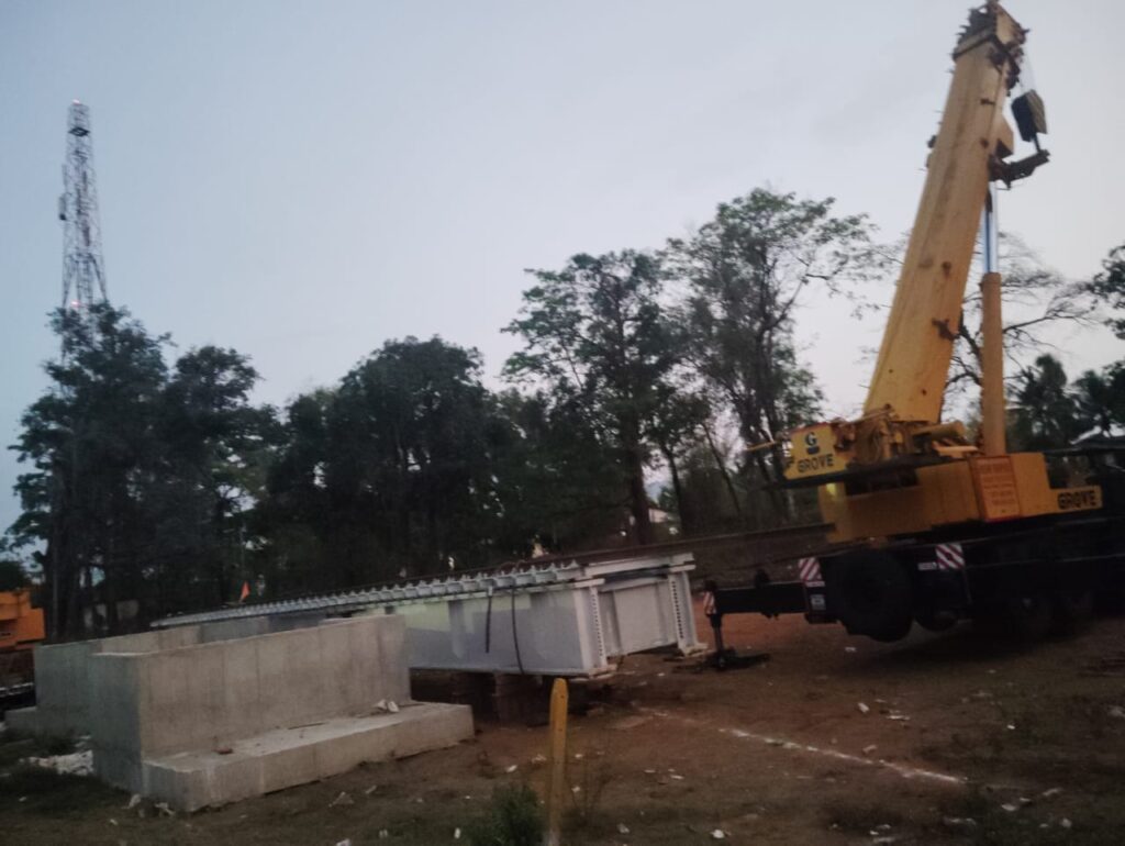 वैभववाडी (प्रतिनिधी) : कोकिसरे रेल्वे भुयारी पुलाचे काम अंतिम टप्प्यात आले असून गुरुवारी रात्री ११. ३० ते शुक्रवारी पहाटे ३. ३० या दरम्यान चार तासाचा कोकण रेल्वे मार्गावर मेघा ब्लॉक घेऊन तात्पुरत्या स्वरूपात लोखंडी पिलर व रूळ असलेला ब्रिज तयार करण्यात येणार आहे. यासाठी मोठी यंत्र सामुग्री तैनात करण्यात आली असून युद्ध पातळीवर काम करण्यात येत आहे. तर २ मे ला हा भुयारी पूल पूर्ण तयार होणार आहे. या भुयारी पुलामुळे तरेळे कोल्हापूर राष्ट्रीय महामार्गांवरील वाहतूकीचा मोठा अडथळा दूर होणार आहे.