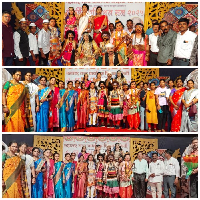 खारेपाटण (प्रतिनिधी) : महाराष्ट्र राज्य प्राथमिक शिक्षक समिती, तालुका कणकवली यांच्या त्रैवार्षिक अधिवेशनात केवळ ‘यक्ष उद्धार’ या दशावतारी नाटकानेच नव्हे, तर विविध कला प्रकारांनी रसिकांची मने जिंकली. शिक्षक कलाकारांनी नाट्य, गायन आणि एकपात्री अभिनयाच्या माध्यमातून एक बहुरंगी सांस्कृतिक कार्यक्रम सादर केला.