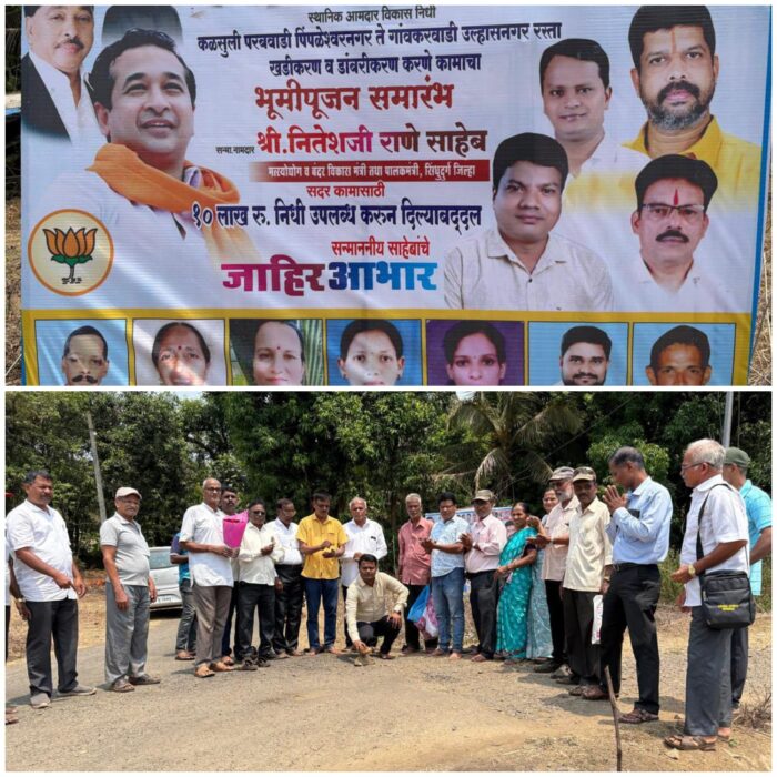 कळसुली परबवाडी पिंपळेश्वर नगर ते गावकरवाडी उल्हासनगर रस्ता खडीकरण डांबरीकरण कामाचा भाजप तालुकाध्यक्ष मिलिंद मेस्त्री यांच्या हस्ते शुभारंभ