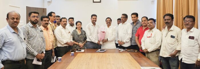 कणकवली (प्रतिनिधी) : कणकवली तालुका पत्रकार संघाच्या नुतन अध्यक्षपदी भगवान लोके यांची निवड झाल्याबद्दल रत्नागिरी – सिंधुदुर्ग माजी खा. विनायक राऊत यांनी पुच्छगुच्छ देवून सत्कार करत पुढील वाटचालीस शुभेच्छा दिल्या . यावेळी त्यांच्या समवेत विधानसभा अध्यक्ष सतिश सावंत , युवासेना जिल्हाप्रमुख सुशांत नाईक , महिला आघाडी अध्यक्ष निलम पालव , तालुकाप्रमुख कन्हैया पारकर , युवासेना तालुकाप्रमुख उत्तम लोके , सी.आर.चव्हाण आदींसह पदाधिकारी उपस्थित होते. तसेच पत्रकार संघाचे माजी अध्यक्ष अजित सावंत , चंद्रशेखर देसाई , जिल्हा कार्यकारिणी सदस्य लक्ष्मीकांत भावे , राजन चव्हाण , विराज गोसावी , तुषार हजारे , आनंद तांबे , मयुर ठाकूर आदींसह पदाधिकारी उपस्थित होते.