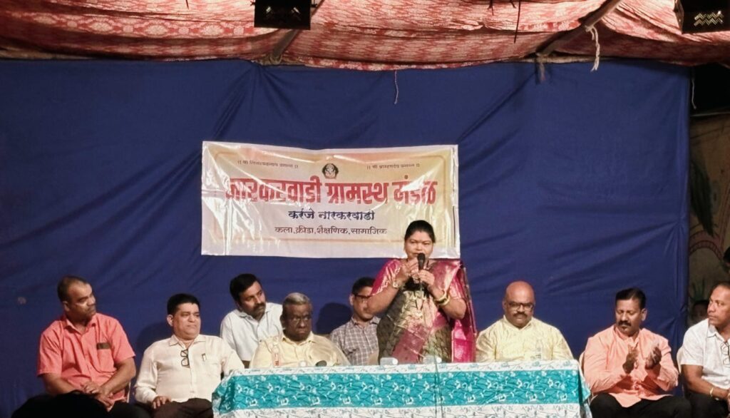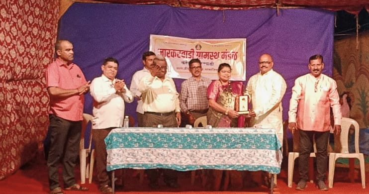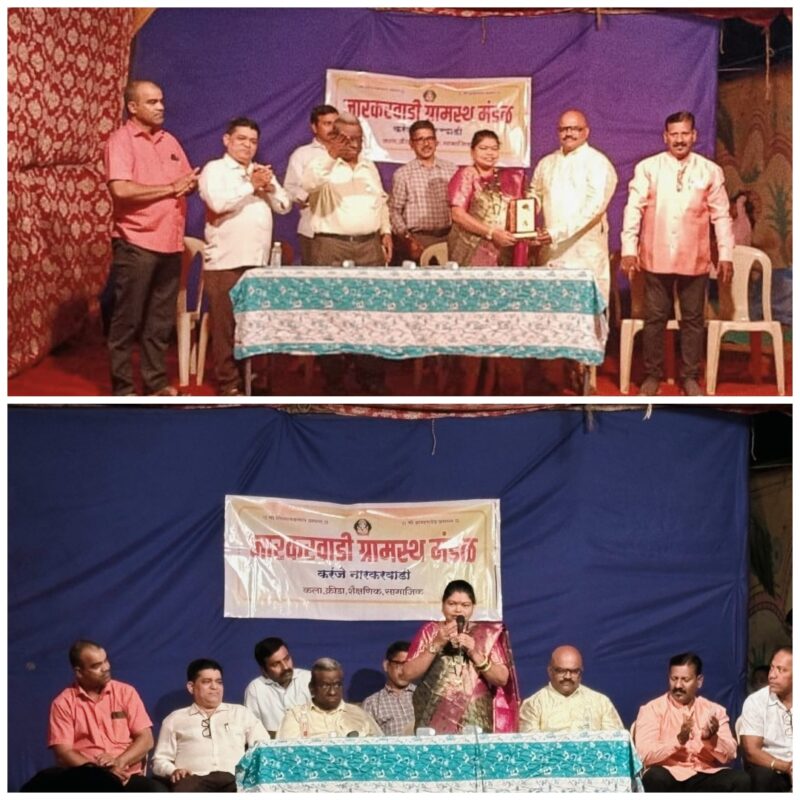 कणकवली (प्रतिनिधी) : करंजे नारकर वाडी येथील श्री ब्राम्हण देव मंदिरचा उत्सवानिमित्त ह्यावर्षी वाडीतील ज्येष्ठ नाट्यकर्मी करंजे गावचे सुपुत्र लेखक, दिग्दर्शक, निर्माता असलेले संतोष काणेकर यांचा अभिनेत्री अक्षता कांबळी यांच्या हस्ते सत्कार करण्यात आला. तसेच ज्येष्ठ महिला आणि पुरुष यांचा ही सत्कार करण्यात आला. यावेळी कांबळी यांनी आपल्या मालवणी भाषेत आपले कलाक्षेत्रातील अनुभव सांगत भरभरून शुभेच्छा दिल्या. नारकरवाडी ग्रामस्थ मंडळचे अध्यक्ष अजित काणेकर, उपाध्यक्ष प्रवीण बोभाटे, सचिव लक्ष्मण नारकर, कार्याध्यक्ष अजित बोभाटे यांनी अक्षता कांबळी यांनी वेळ देत उपस्थित राहिल्या बद्दल मंडळाच्या वतीने आभार मानले.