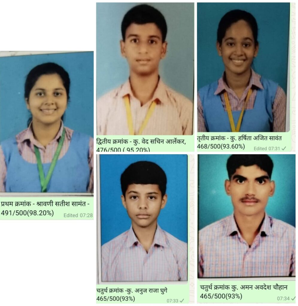 तृतीय – कु. हर्षिता अजित सावंत – 468/500 (93.60%)