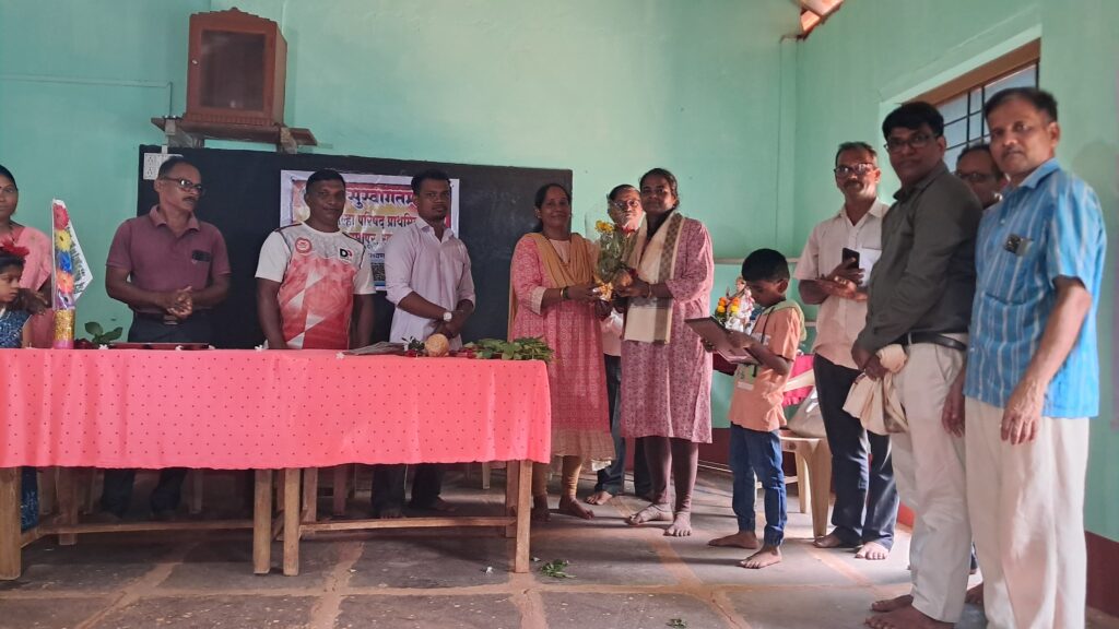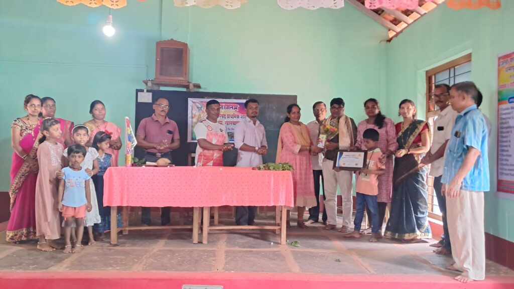 यावेळी शाळेला संगणक व विविध शैक्षणिक साहित्य उपलब्ध करून देणारे ज्ञानदेव मुरलीधर मेस्त्री यांचा शाल, श्रीफळ, पुष्पगुच्छ, सन्मानचिन्ह व सन्मानपत्र देऊन सरपंच मानसी परब यांच्या हस्ते सत्कार करण्यात आला. त्याचबरोबर ज्ञानदेव मेस्त्री यांच्या पत्नी यांचाही शाळा व्यवस्थापन समिती उपाध्यक्ष मानसी गावडे यांच्या हस्ते शाल व श्रीफळ, गुलाबपुष्प देऊन सन्मान करण्यात आला.