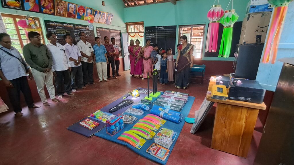 ज्ञानदेव मेस्त्री व मित्रपरिवार यांच्यामार्फत संगणक व शैक्षणिक साहित्य प्रदान