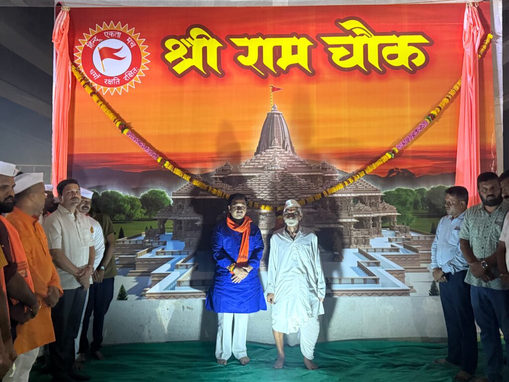 श्री शिवप्रतिष्ठान हिंदुस्तान शाखा बांदा तर्फे मुंबई – गोवा महामार्गावर कट्टा कॉर्नर येथे श्रीराम चौकाची स्थापना करण्यात आली आहे. त्याचे अधिकृत उद्घाटन संभाजीराव भिडे गुरुजींच्या हस्ते करण्यात आले. यावेळी ना. नितेश राणे बोलत होते. यावेळी भाजपा महिला मोर्चा जिल्हाध्यक्ष श्वेता कोरगावकर, जिल्हा बँक अध्यक्ष मनीष दळवी, माजी शिक्षण व आरोग्य सभापती प्रमोद कामत, गुरुनाथ पेडणेकर, बांदा उपसरपंच आबा धारगळकर, माजी सरपंच मंदार कल्याणकर, बाळा आकेरकर, संदेश पावसकर, दोडामार्ग नगराध्यक्ष चेतन चव्हाण, बांदा मंडल अध्यक्ष स्वागत नाटेकर, शहर अध्यक्ष बाबा काणेकर, साई काणेकर, गुरु सावंत, मधुकर देसाई, प्रविण देसाई, सिद्धेश महाजन, गुरु कल्याणकर, निलेश सावंत, निलेश कदम, मंदार केसरकर, मंगेश पाटील आदिसह शेकडो हिंदू प्रेमी उपस्थित होते. यावेळी हिंदू राष्ट्र की जय आणि जय श्रीराम, जय हनुमानच्या घोषणांनी परिसर दणाणून गेला होता.