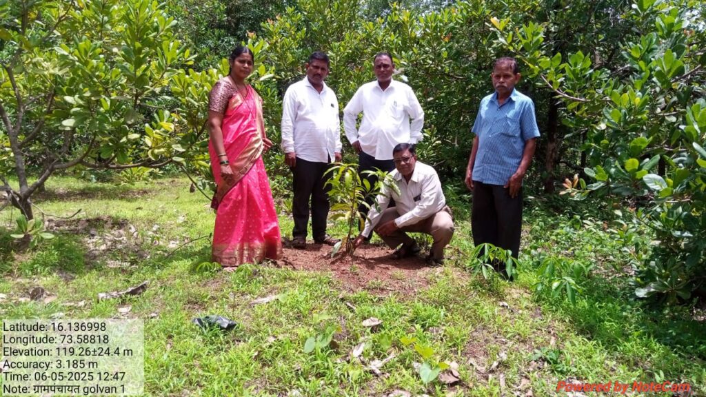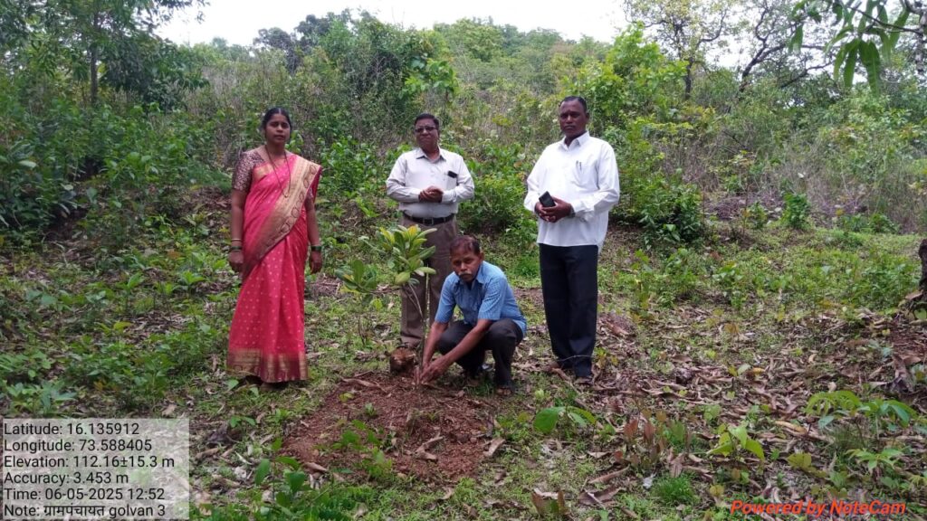 चौके (प्रतिनिधी) : जागतिक पर्यावरण दिनाचे औचित्य साधून शासनाच्या “एक पेड माँ के नाम” या योजने अंतर्गत मालवण तालुक्यातील गोळवण धवडकी वाडी येथे ग्रामपंचायत सदस्य साबाजी गावडे यांच्या जमिनीत आज वृक्षारोपण करून १०० वृक्ष लागवडीचा शुभारंभ करण्यात आला. ग्रामपंचायत सदस्य साबाजी गावडे आणि ग्रामपंचायत कर्मचारी करुणा राणे यांच्या शुभहस्ते वृक्षारोपण करण्यात आले. यावेळी सरपंच सुभाष लाड, उपसरपंच शरद मांजरेकर, ग्रामसेविका अर्पिता शेलटकर, कर्मचारी करुणा राणे, प्रसाद परब आदि जण उपस्थित होते.