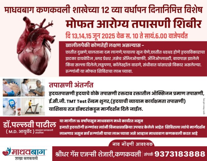 या मागील 16 वर्षापासून माधवबाग मध्ये कार्यरत असून हजारो हृदयरोगी रुग्णांवर त्यांनी विनाशस्त्रक्रिया उपचार केलेले आहेत शिबिराला त्याचे मार्गदर्शन लाभणार असून सर्व रुग्णांनी याचा लाभ घ्यावा असे आव्हान माधवबाग कणकवली करत आहे