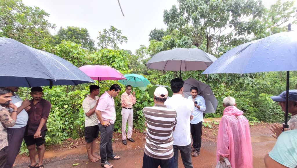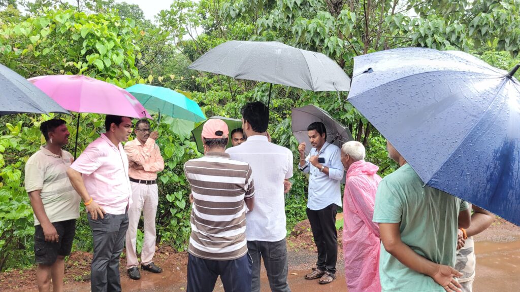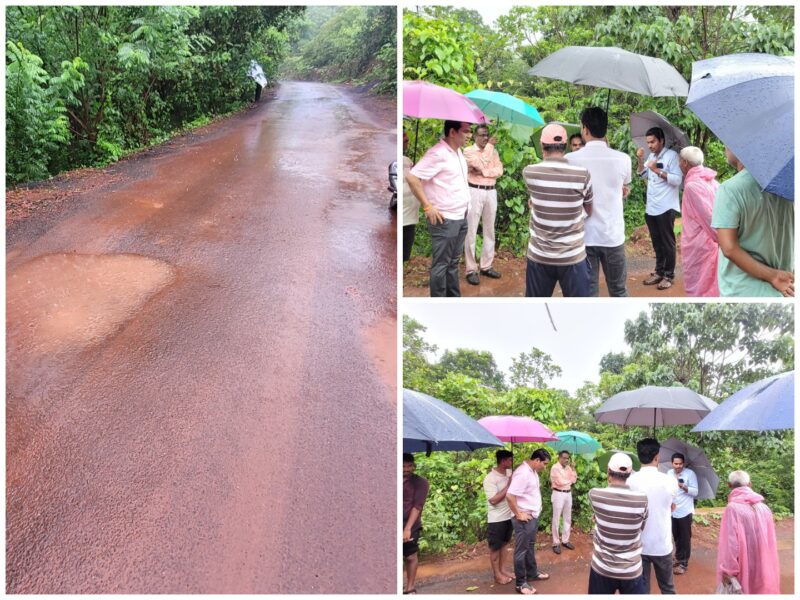 युवासेना जिल्हाप्रमुख सुशांत नाईक, तालुकाप्रमुख रवींद्र जोगल यांनी मुख्यमंत्री ग्रामसडक योजनेच्या अधिकाऱ्यांन समवेत केली खचलेल्या रस्त्याची पाहणी