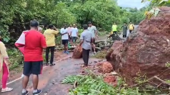 वेंगुर्ला (प्रतिनिधी) : काल रात्री कोसळलेल्या मुसळधार पावसामुळे वेंगुर्ले मालवण सागरी महामार्गावरील दाभोली येथे मुख्य रस्त्यावर दरड कोसळली आहे. सुदैवाने यावेळी वाहतूक नसल्याने मोठा अनर्थ टळला आहे.