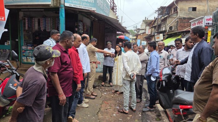 कणकवली (प्रतिनिधी) : कणकवली बाजारपेठेत रस्त्यावर दुतर्फा झालेल्या अतिक्रमणांबाबत सोमवारी सायंकाळी मुख्याधिकारी गौरी पाटील यांच्या सह पोलीस निरीक्षक मारुती जगताप, कणकवली तालुका व्यापारी संघाचे अध्यक्ष दीपक बेलवलकर व प्रतिनिधींनी बाजारपेठेतील अतिक्रमणांची संयुक्त पाहणी केली. लवकरच कणकवली बाजारपेठ रस्त्याची मोजणी होणार असून त्यानंतर अतिक्रमणधारकांना लेखी नोटिसा देण्यात येतील व त्यानंतरच अतिक्रमणे हटविली जातील अशी माहिती मुख्याधिकारी पाटील यांनी दिली.