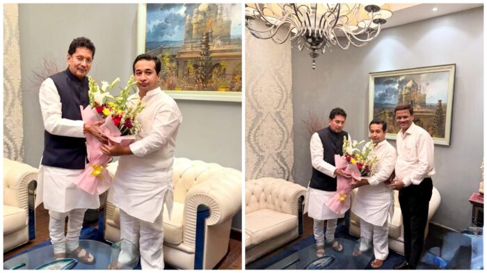 मुंबई (प्रतिनिधी) : राज्याचे मत्स्य व्यवसाय व बंदरे विकास मंत्री तथा सिंधुदुर्ग जिल्ह्याचे पालकमंत्री नितेश राणे यांच्या वाढदिवसानिमित्त माजी शालेय शिक्षण मंत्री तथा सावंतवाडी विधानसभा मतदारसंघाचे आमदार दीपक केसरकर यांनी भेट घेऊन शुभेच्छा देत अभीष्टचिंतन केले. यावेळी शिवसेनेचे जिल्हा समन्वयक सचिन वालावलकर हे देखील उपस्थित होते.