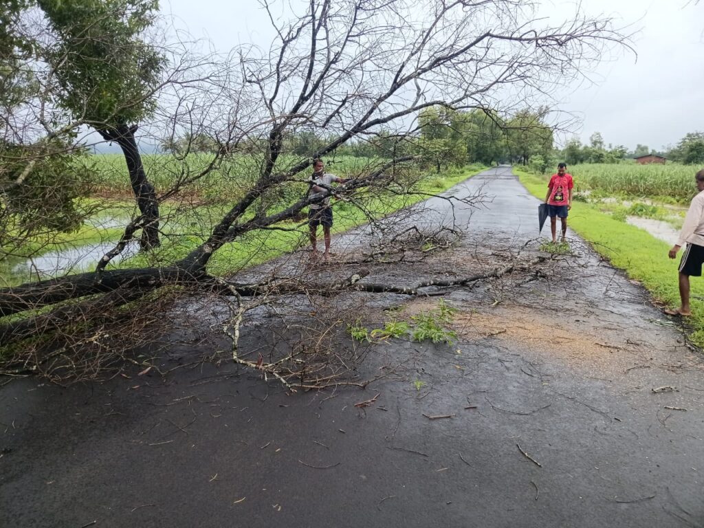 सरपंच वासुदेव रावराणे यांनी ग्रामस्थांसह झाड बाजूला करत वाहतूक केली सुरळीत
