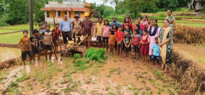 आचरा (प्रतिनिधी) : पळसंब वायंगणकर वाडी येथे शेतकरी नारायण सावंत यांच्या शेतात जि.प.पूर्ण प्राथमिक शाळा पळसंब नं. १ शाळेतील मुलांनी भात शेती लावणी करत शेतीची माहिती घेतली. या उपक्रमाला वामन परब यांनी लाडू व शाळा व्यवस्थापन समिती पळसंब अध्यक्ष व नारायण सावंत यांनी थंड पेयचे वाटप केले. शाळा मुख्याध्यापक विनोद कदम सह शिक्षिका साै.सोनगटटे, अपूर्वा पवार, श्रीधर सावंत, अशोक सावंत, अंगणवाडी सेविका सुचिता सावंत तसेच वायंगणकर वाडीतील महिला मोठ्या संख्येने उपस्थित होत्या.