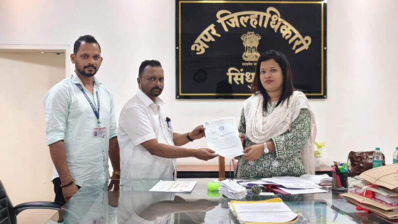 यावेळी जिल्हाधिकारी अनिल पाटील उपस्थित नसल्यामुळे अप्पर जिल्हाधिकारी शुभांगी साठे यांच्याजवळ लेखी निवेदन देण्यात आले. याप्रसंगी ह्युमन राईट असोसिएशन फॉर प्रोटेक्शनचे कोकण विभागीय अध्यक्ष संतोष नाईक, सिंधुदुर्ग रत्नागिरी जिल्हा समन्वयक प्रणय बांदिवडेकर, कणकवली तालुका सदस्य अक्षय शेडेकर उपस्थित होते.