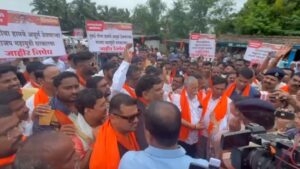 कुडाळ (प्रतिनिधी) : गेली अकरा वर्षे रखडलेला मुंबई गोवा महामार्ग आणि महामार्गावर पडलेल्या खड्डयांबाबत सिंधुदुर्ग जिल्हा शिवसेना उद्धव बाळासाहेब ठाकरे पक्षाने आक्रमक पवित्रा घेत माजी आमदार वैभव नाईक यांच्या नेतृत्वाखाली आज सकाळी कुडाळ तालुक्यातील हुमरमळा येथे मुंबई गोवा महामार्गावर रास्तारोको आंदोलन केले. या आंदोलनाला शिवसेना पदाधिकारी, शिवसैनिक व जिल्हावासियांचा उत्स्फ़ुर्त प्रतिसाद लाभला होता आदोलकांनी रस्त्यावर बसून सुमारे अर्धा तास महामार्ग रोखून धरला. यावेळी माजी आमदार परशुराम उपरकर, कणकवली विधानसभा प्रमुख सतीश सावंत, जिल्हाप्रमुख संदेश पारकर, जिल्हाप्रमुख बाबुराव धुरी, युवासेना जिल्हाप्रमुख मंदार शिरसाट, युवासेना जिल्हाप्रमुख सुशांत नाईक, महिला जिल्हाप्रमुख श्रेया परब यांची प्रमुख उपस्थिती होती. यावेळी पोलिसांनी हस्तक्षेप करत माजी आ. वैभव नाईक यांच्यासह इतर नेते व कार्यकर्त्यांना अटक केली. दरम्यान राज्याचे महसूल मंत्री चंद्रशेखर बावनकुळे हे सिंधुदुर्ग जिल्हा दौऱ्यावर आले असता त्यांनी वैभव नाईक यांच्यासह शिवसेना शिष्टमंडळाला ओरोस येथे बोलावून घेत त्यांच्यासमवेत बैठक घेतली. तसेच यावेळी केंद्रीय रस्ते वाहतूक मंत्री नितीन गडकरी यांच्याशी फोनवर चर्चा करून शिवसेना शिष्टमंडळाची मागणी त्यांच्यापर्यंत पोहचविण्यात आली. यावेळी वैभव नाईक यांनीही ना. नितीन गडकरी यांच्याशी रखडलेल्या महामार्गाबाबत फोनवर चर्चा केली. त्यावर ना. गडकरी यांनी प्रलंबित कामाबाबत लवकरच आढावा बैठक घेऊन मुंबई गोवा महामार्ग पूर्ण करू असे आश्वासित केले. यावेळी जिल्हाधिकारी अनिल पाटील, पोलीस अधीक्षक मोहन दहीकर,जि. प. सीईओ रवींद्र खेबुडकर, कुडाळ प्रांताधिकारी ऐश्वर्या काळुशे आदि अधिकारी उपस्थित होते.