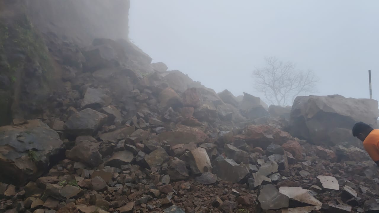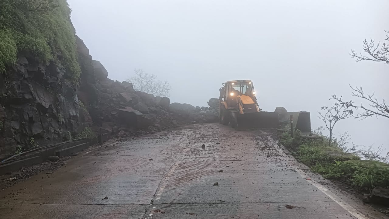 तालुक्यात गेले काही दिवस संततधार पडणाऱ्या पावसाचा फटका करुळ घाटाला बसला आहे. गुरुवारी सकाळी पहिल्या यु आकाराच्या वळणात दरडीचा मोठा भाग रस्त्यावर कोसळला आहे. मोठमोठ्या दगडी रस्त्यात आल्याने वाहतूक पूर्णपणे बंद झाली आहे. दरम्यान रस्त्याच्या दोन्ही बाजूने वाहनांच्या लांबच लांब रांगा लागल्या आहेत. घटनेची माहिती मिळताच वैभववाडी तहसीलदार सूर्यकांत पाटील, वैभववाडी पोलीस निरीक्षक मनोज सोनवलकर व राष्ट्रीय महामार्ग प्राधिकरणाच्या अधिकाऱ्यांनी घटनास्थळी भेट दिली. दरड हटविण्यासाठी रस्त्याच्या दोन्हीही बाजूने जेसिबी लावण्यात आले आहेत. मात्र मोठमोठे दगड असल्यामुळे मशीनच्या साहाय्याने दगड फोडून बाजूला करण्यात येत आहेत. मात्र घाटात पडत असलेल्या पावसामुळे या कामात व्यत्यय येत आहे. तर याठिकाणी आणखी काही दरडीचा भाग कोसळण्याची शक्यता राष्ट्रीय महामार्ग प्राधिकरणच्या अधिकाऱ्यांनी व्यक्त केली आहे. त्यामुळे ही दरड हटवून वाहतूक सुरु होण्यास शुक्रवारी दुपार होण्याची शक्यता व्यक्त केली आहे.