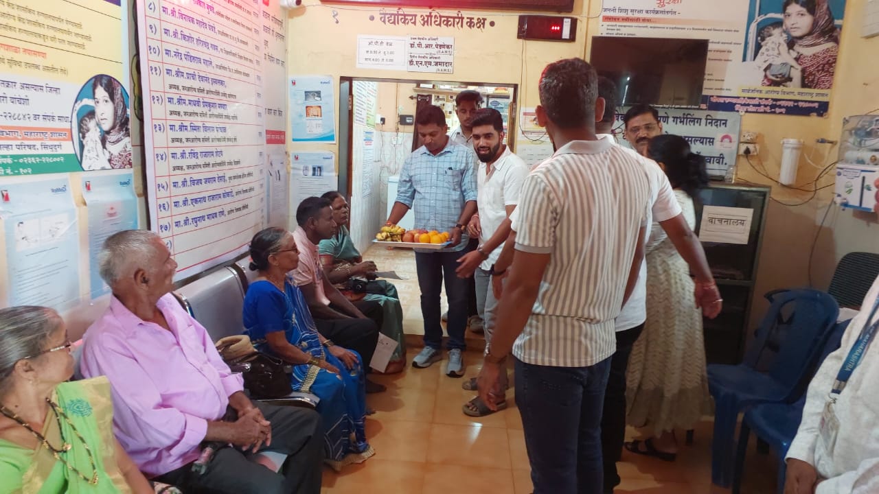 निखिल वळंजू यांच्या प्रमुख उपस्थित रुग्णांना फळे वाटप
